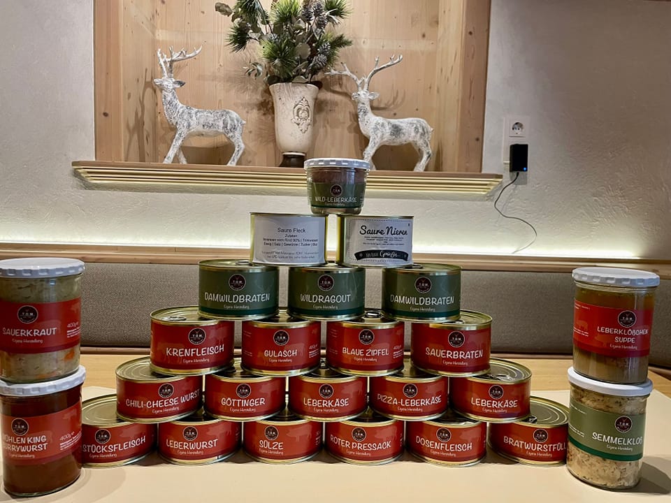 Neben feinen Gläsergerichten findest du bei uns auch herzhafte Glas‒ und Dosenkonserven, perfekt für die deftige Brotzeit oder als Vorrat für Zuhause.